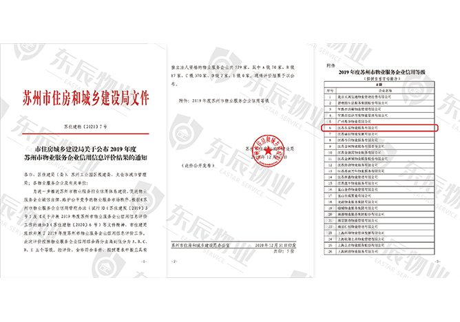 2019年度蘇州市物業(yè)服務(wù)企業(yè)信用等級(jí)A級(jí)