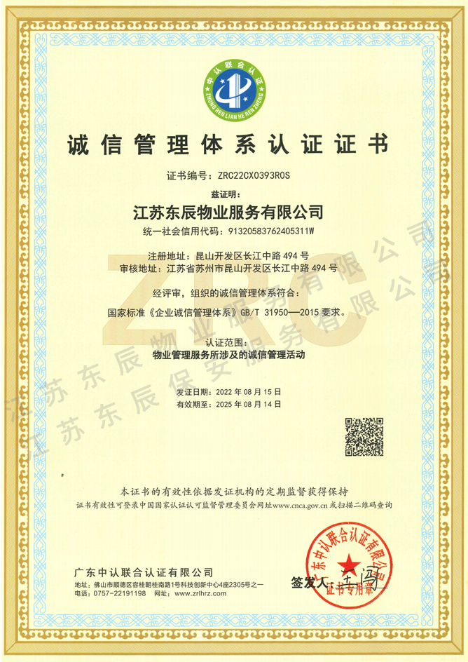 2022-2025年誠(chéng)信管理體系認(rèn)證證書