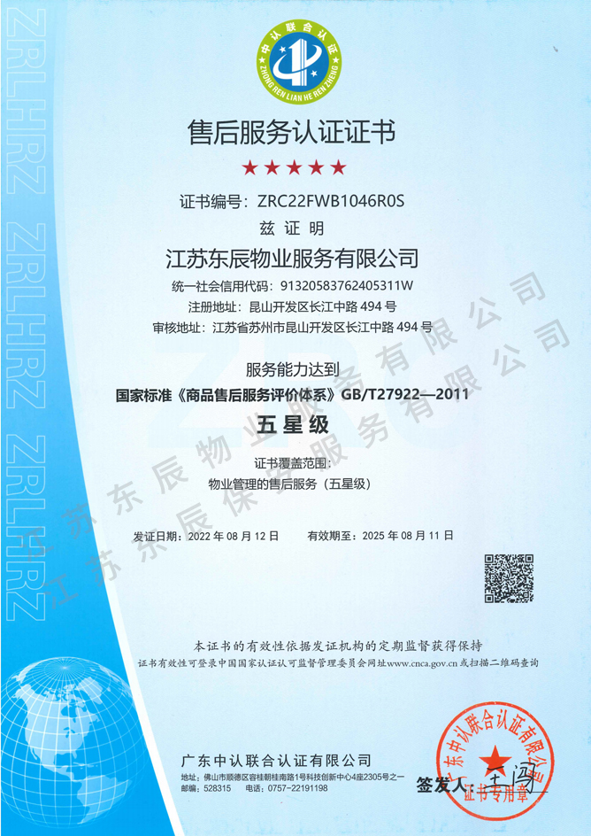 2022-2025年售后服務(wù)認(rèn)證證書